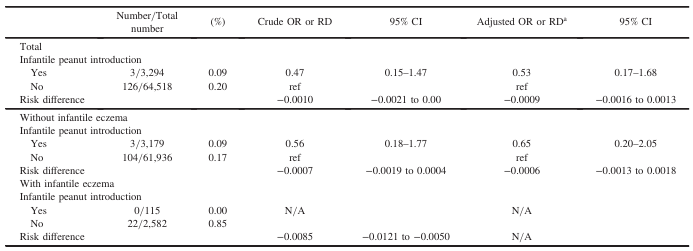 - The effect of infantile peanut introduction on peanut allergy prevention was unclear.