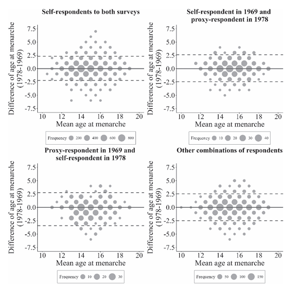 - This study is the first to evaluate the reproducibility of age at menarche between self-respondents and proxy respondents using appropriate measurements.